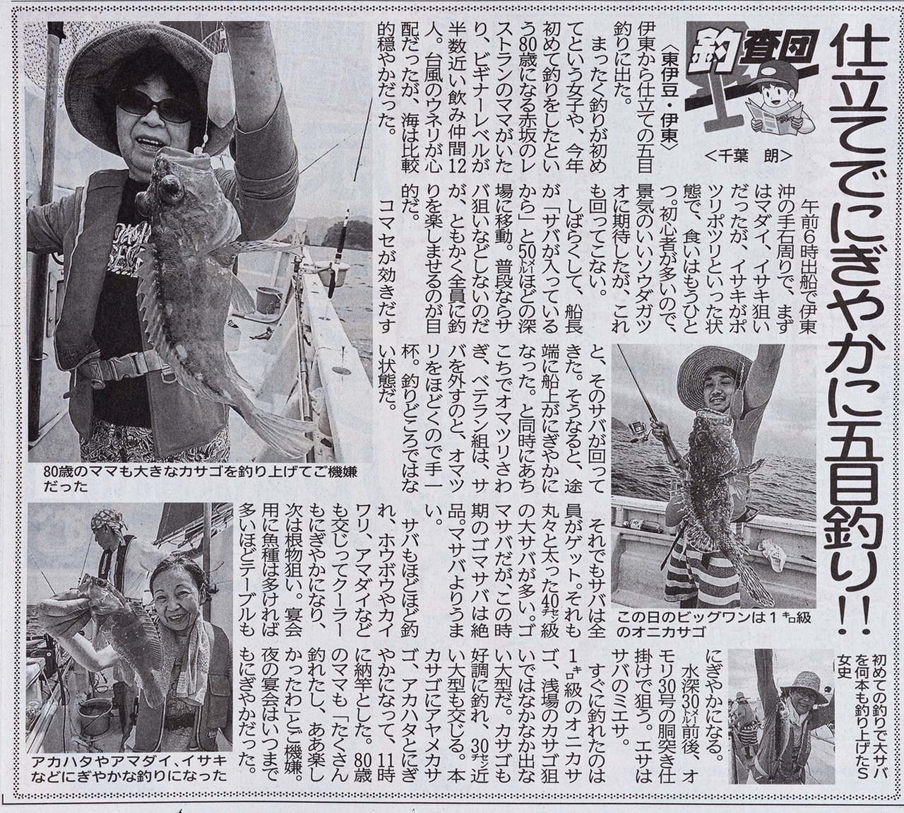 【canti canti赤坂店 ママが毎日新聞載りました!】【canti canti赤坂店 ママが毎日新聞載りました!】 先日の伊東の船釣りに初挑戦したママ、立派なカサゴと大きなサバ釣ってご機嫌の様子、ついに紙面デヴューです! 80歳バレバレですがご本人ご満悦にて、ご来店の際は新聞見せびらかしますからどうぞお付き合いの程よろしくお願いいたします^^/ ちなみに全国版のデイリースポーツも併せてご覧ください。写真クリックどうぞ!