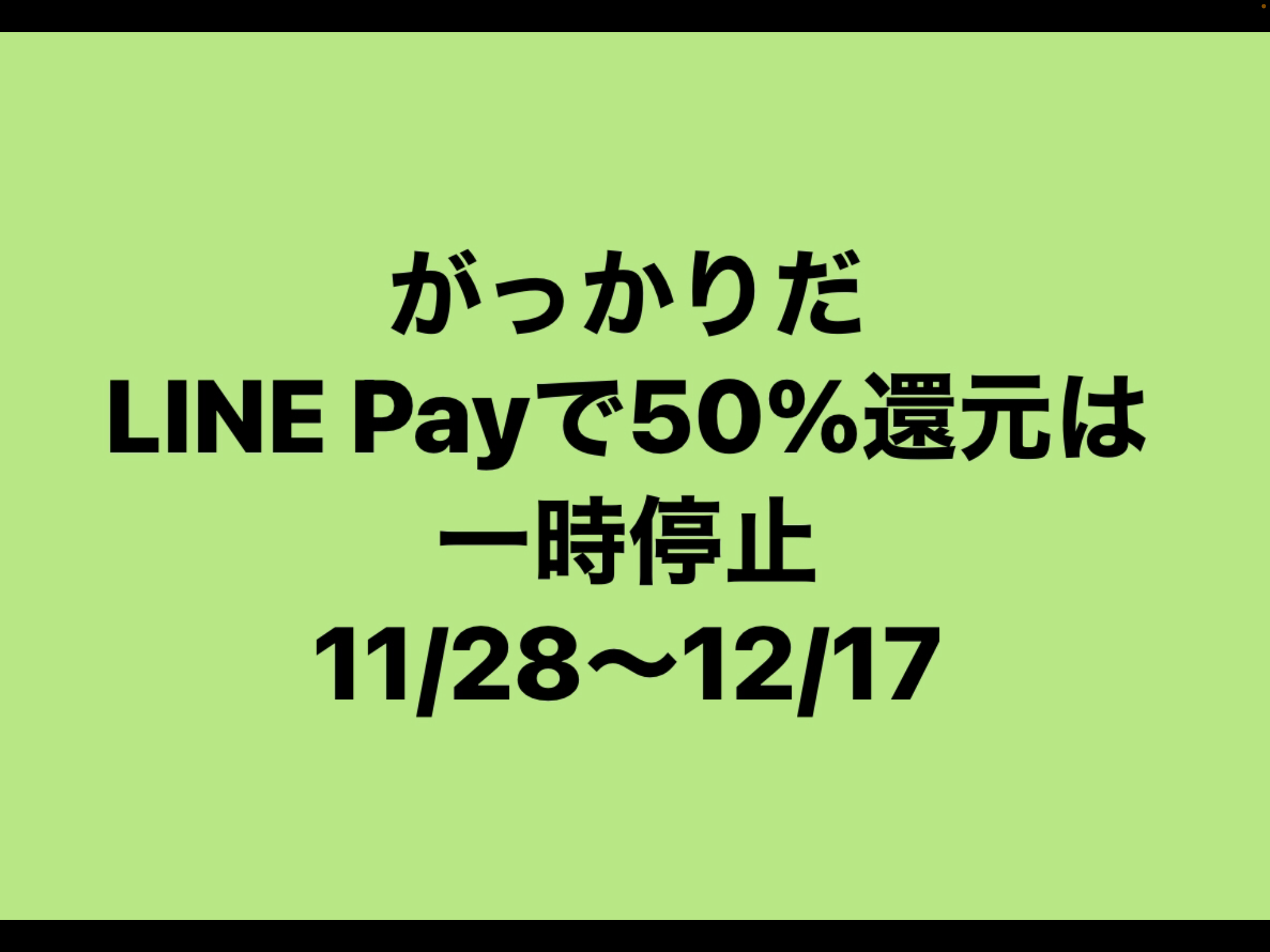 【残念なお知らせです。「VISIT MINATO 応援キャンペーン」一時停止】【残念なお知らせです。「VISIT MINATO 応援キャンペーン」一時停止】 ご案内しておりました「LINE Payで50%ポイント還元!」は 東京都の外出自粛要請等を受け、11/28〜12/17の期間、一時停止との知らせを港区から受けました。皆さまには大変お騒がせして申し訳ありません。再開時にはまたお知らせいたしますので、しばらくの間、お待ちくださいませ。 今日は使えます!