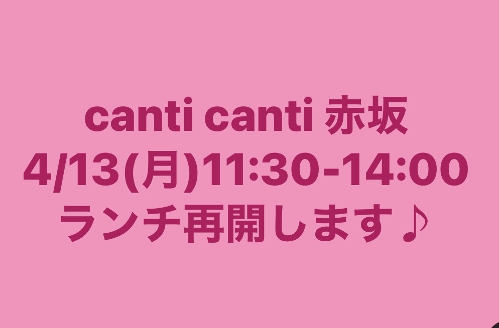 ![]() ビストロ「canti canti (カンティ・カンティ)」で楽しいひと時を 魚と自然を愛し、美味しいお料理と気の置けない仲間たちとの語らいで、あっという間に時間が過ぎていく赤坂のビストロレストラン「canti canti (カンティ・カンティ)」からの定休日のお知らせや新着おすすめメニューのご紹介につきましてはこちらのページをご覧下さいませ。 2026年04月12日